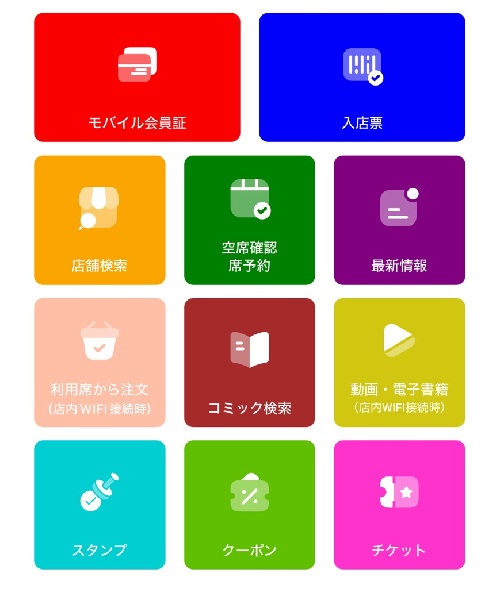 - **スタンプ付与(ポイント)、割引操作、チケット購入、同じ席への複数入店**ができるようになり、店舗をスムーズにご利用いただけます。