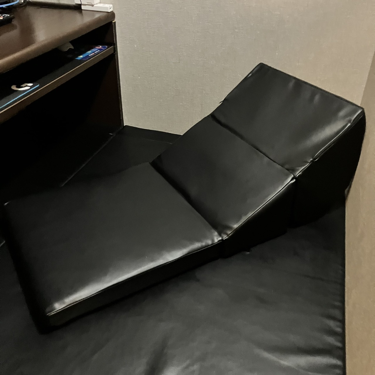 基本上半身しか映らないテレワークスタイルであればバッチリ。ゆったり靴を脱いで足を伸ばして、テレワークに疲れたら横になることも出来ます。