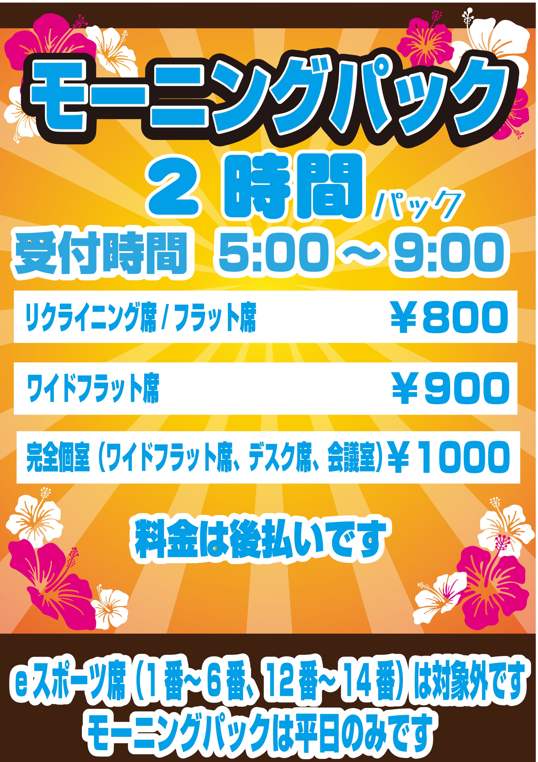 5時~9時の間にご入店いただいたお客様限定で、とってもお得なモーニングパックがスタートしました!
