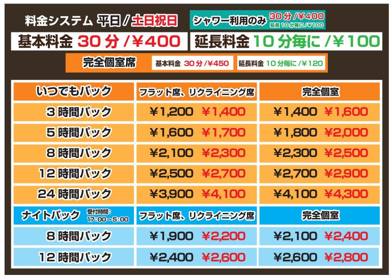 ※ナイトパックは17時~5時の時間帯に入店のお客様に適用されます