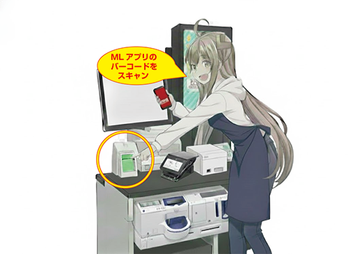 MLアプリのモバイル会員証画面のバーコードをスキャンして入店すると、