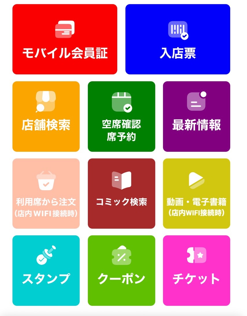 - **スタンプ付与(ポイント)、割引操作、チケット購入、同じ席への複数入店**ができるようになり、店舗をスムーズにご利用いただけます。