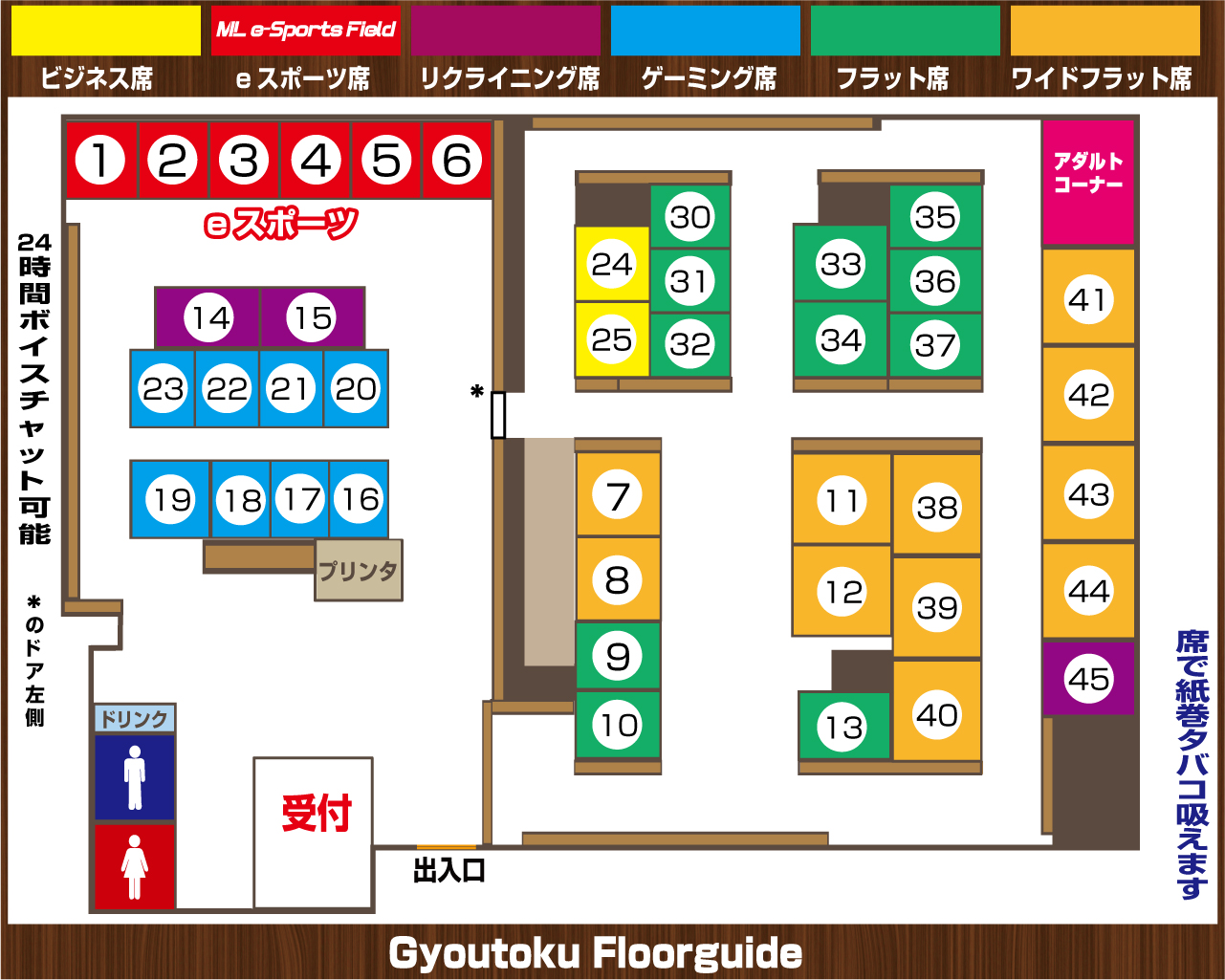 ・ワイドフラット席6~9番席(TV1台PCモニター1台)