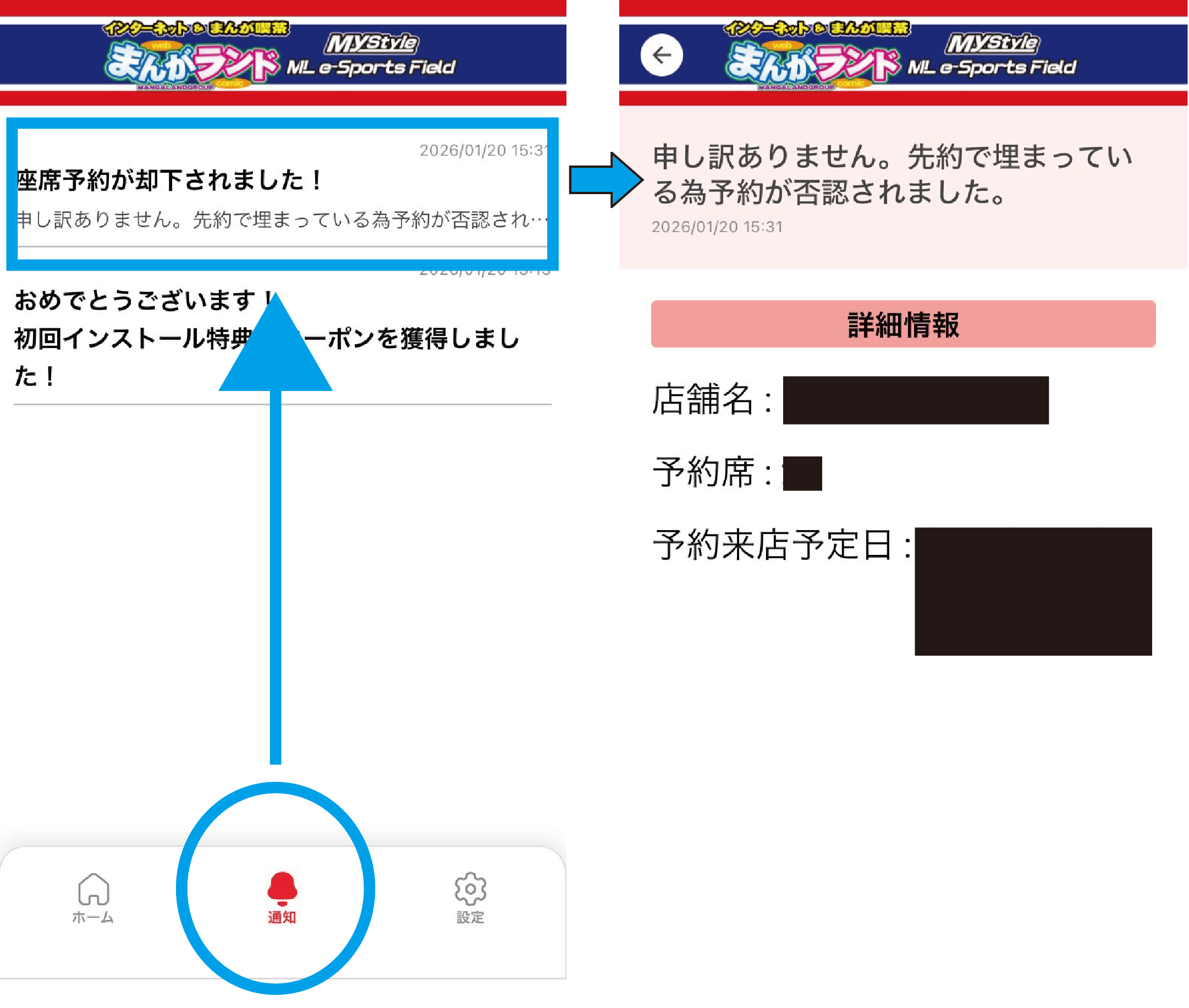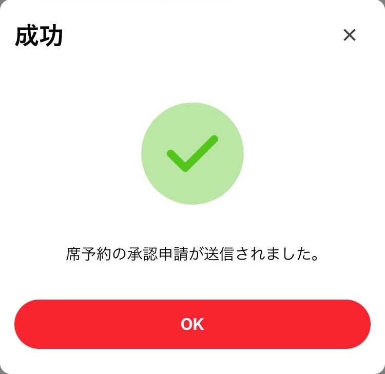 ※選ばれた座席が、先に同じ時間帯に予約で埋まった場合は、後ほどアプリ内通知メッセージにてお知らせいたします。
